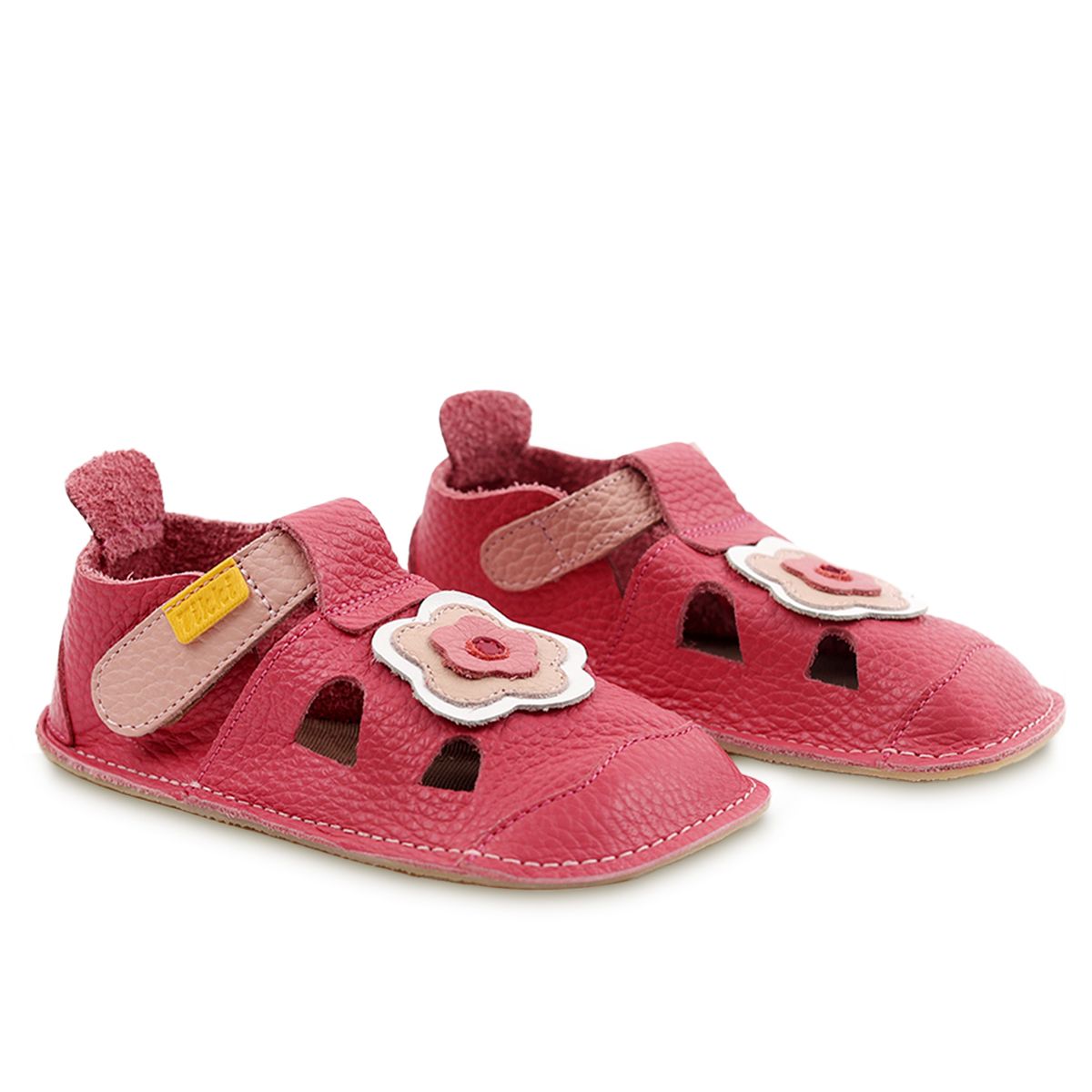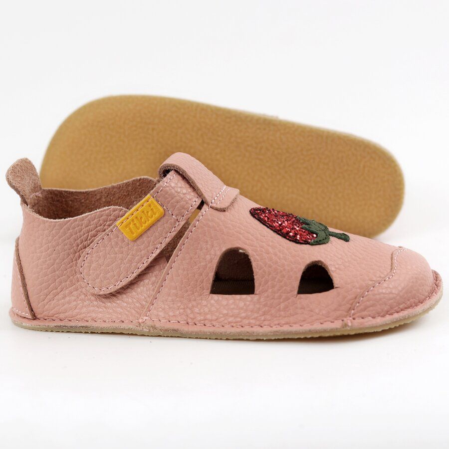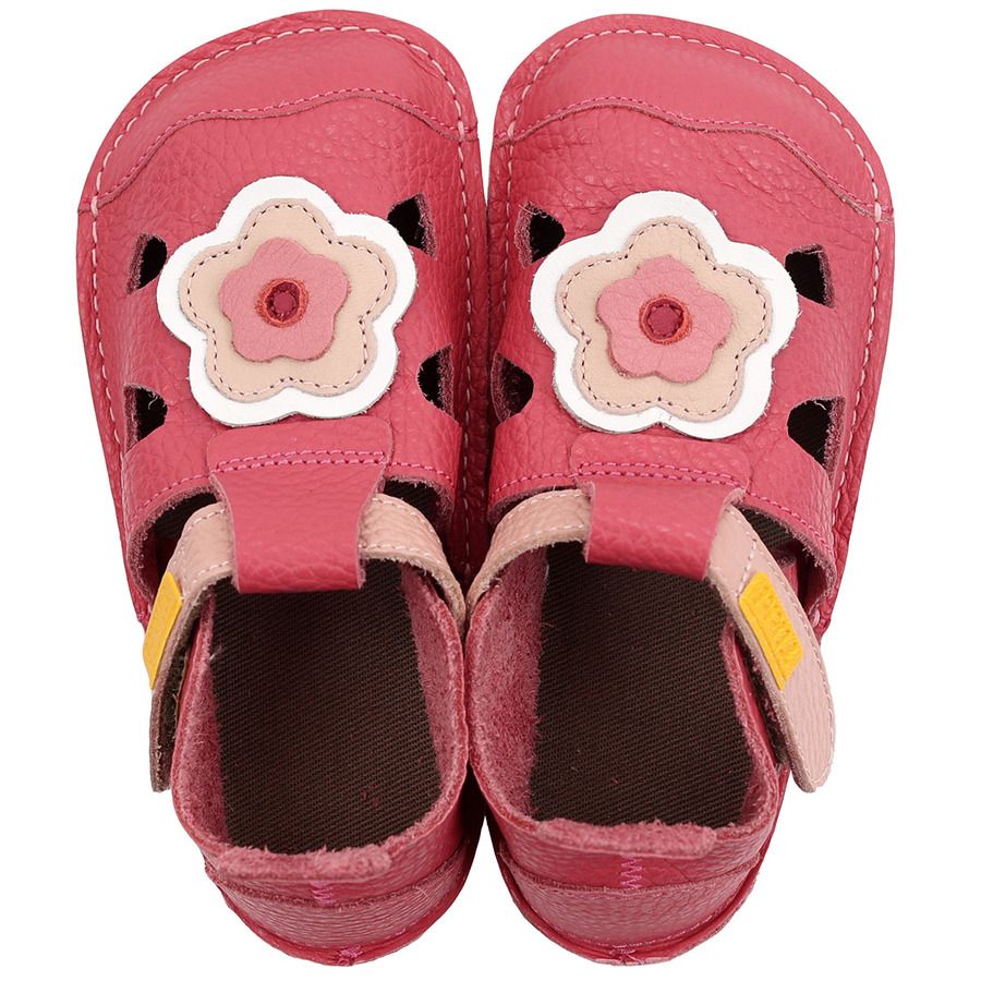 Lette, bløde og slanke. Disse sandaler fremmer fri bevægelse med en 2 mm fleksibel sål og en behagelig 0,8 mm indersål. Håndlavet i en lys Blossom-farve, ideel til børn, der elsker at udforske.